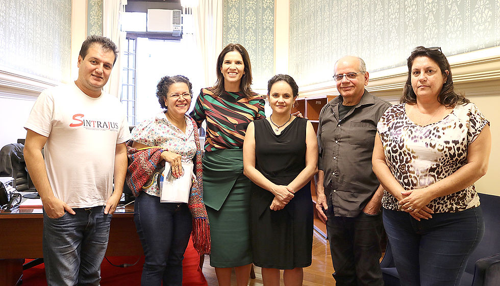 Reunião com as juízas assessoras Conforme deliberado durante o ato na Praça João Mendes, um grupo de dirigentes, com representantes da Assojubs, Sintrajus e Sindjesp, foi ao Palácio da Justiça no intuito de cobrar a reunião com a Comissão de Orçamento do TJ-SP que deveria ter acontecido em junho, mas não foi agendada.