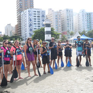 A remada durou por volta de duas horas com uma parada para mergulho na Ilha das Palmas e descida na praia do Sangava (no Guarujá).